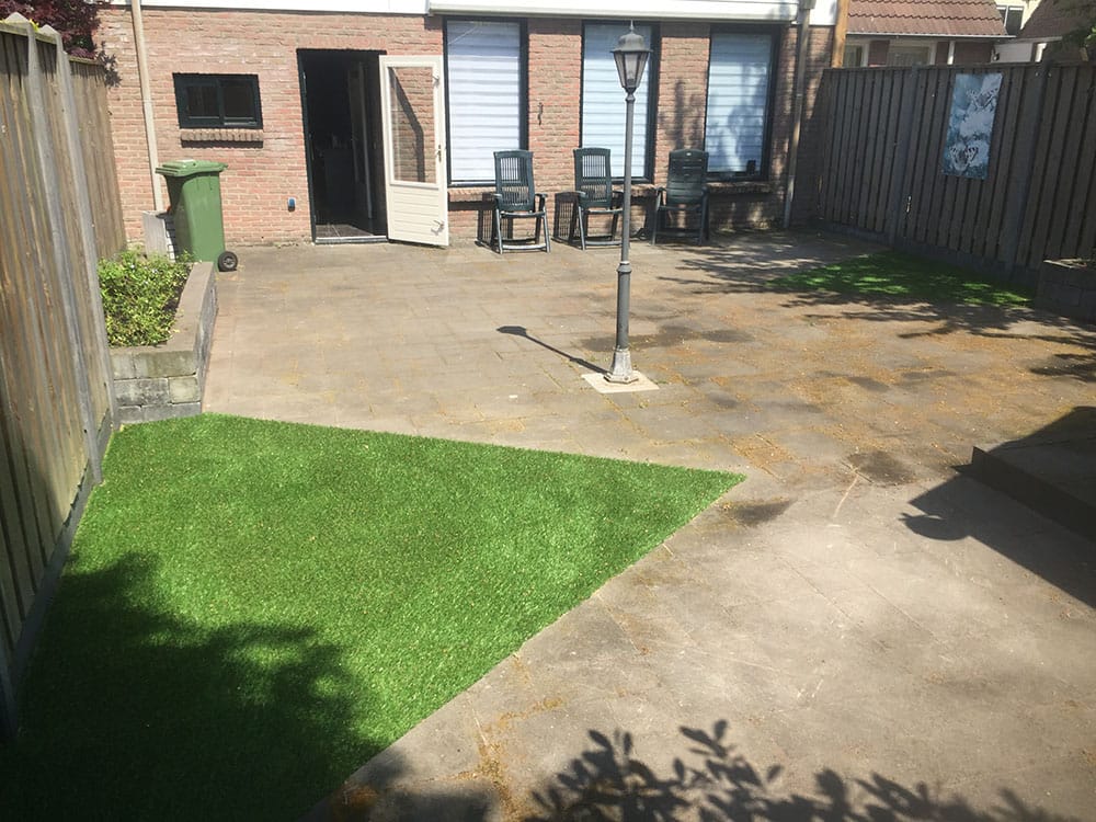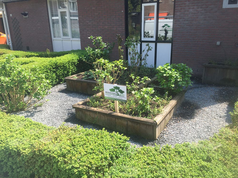 De klant uit Deventer Colmschate wilde graag de gehele voor- en achtertuin vernieuwen. We voeren vooraf altijd een vrijblijvend gesprek om de wensen te inventariseren. Een van de wensen was dat de tuin makkelijker te onderhouden zou zijn. Dit hebben we als hovenier o.a. gerealiseerd door het gras te vervangen door kunstgras. De verhoogde bakken zaten vol met zevenblad en onkruid waar je niet makkelijk vanaf komt, daarom hebben we die grond afgevoerd, er nieuwe verse grond op aangebracht en de bakken opnieuw aangeplant. Tot slot hebben we het oude grind vervangen voor nieuw grind waardoor het ook weer lekker fris oogt!